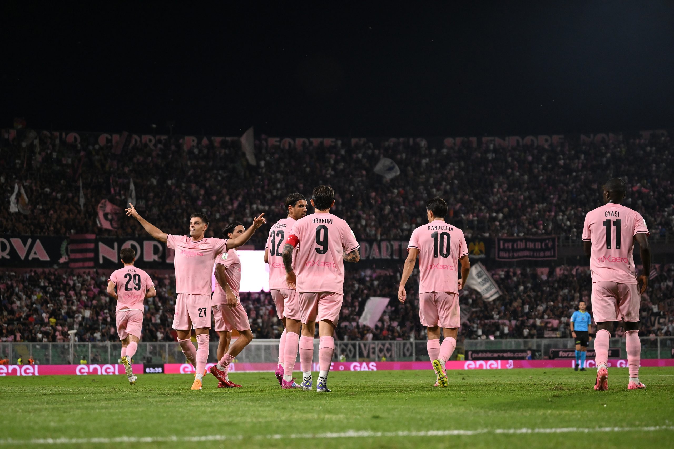 PALERMO: 66 Joronen, 3 Augello, 8 Segre, 9 Brunori (C), 13 Bani, 17 Giovane, 20 Pohjanpalo, 23 Diakité, 27 Pierozzi, 28 Blin, 32 Ceccaroni.